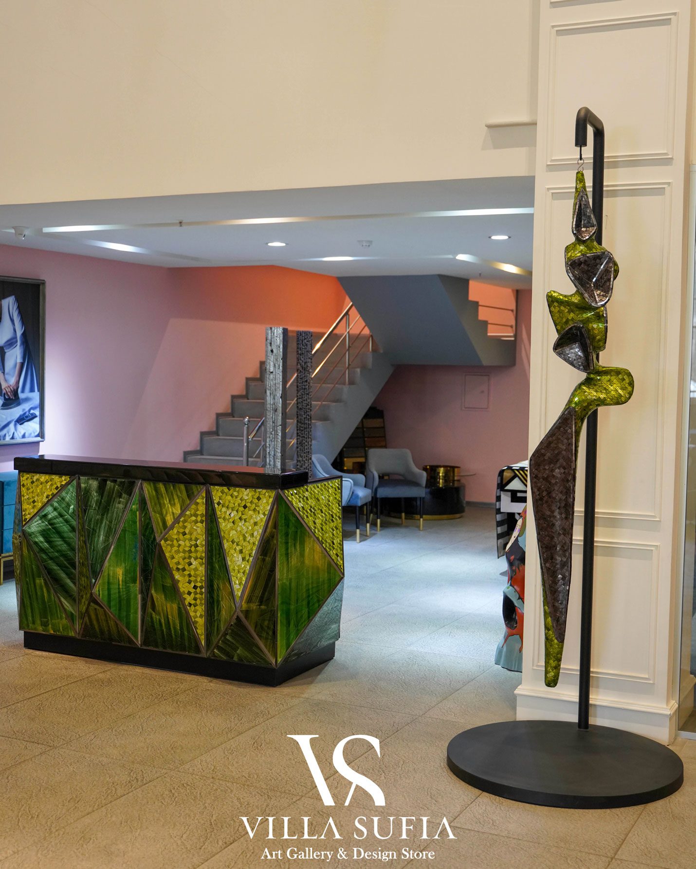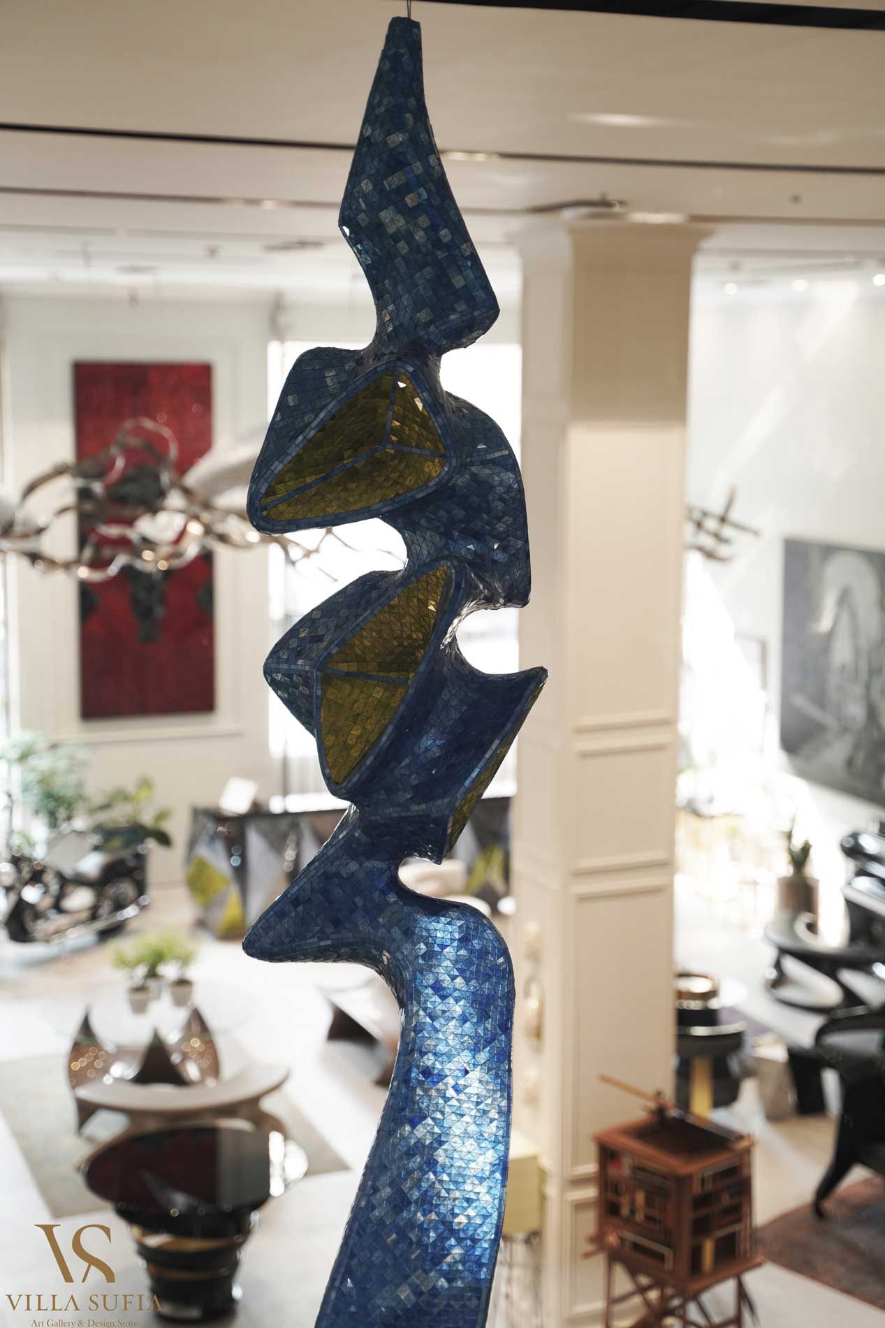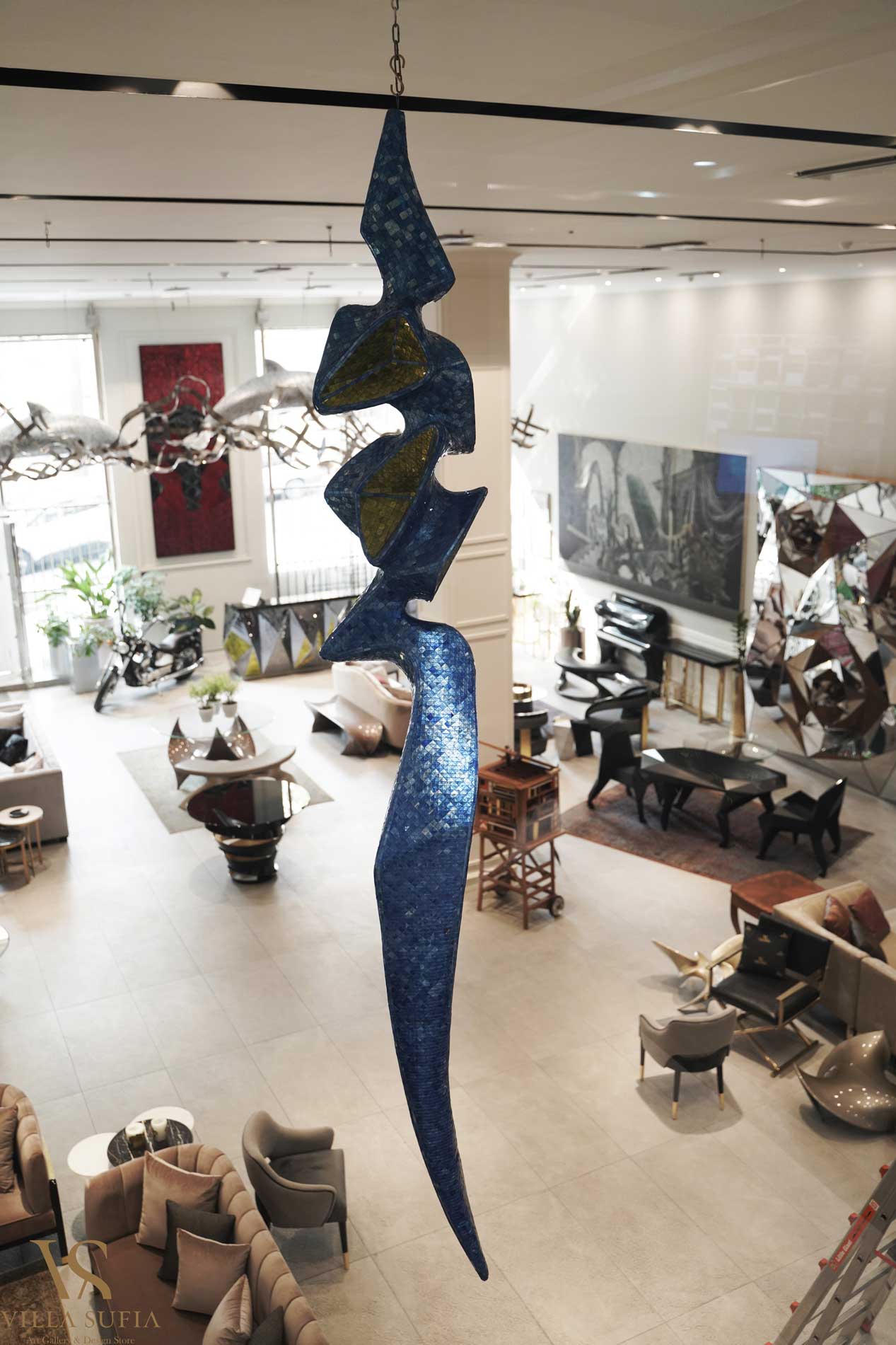 Villasufia is a design store and art gallery in Shemiran, Tehran. It has a design studio which provides design services to designers and builders. This studio includes various sections such as interior design, furniture design, building design, object design, industrial design, and carpet design. They have a professional engineering team to prepare technical drawings of objects, and in the production department, they also have various workshops such as wood, metal, glass, and fiber.