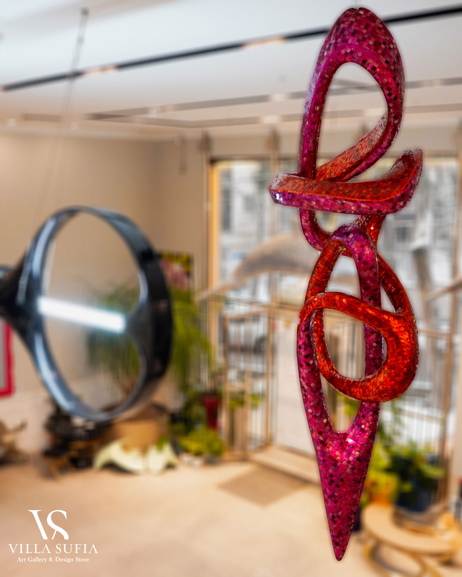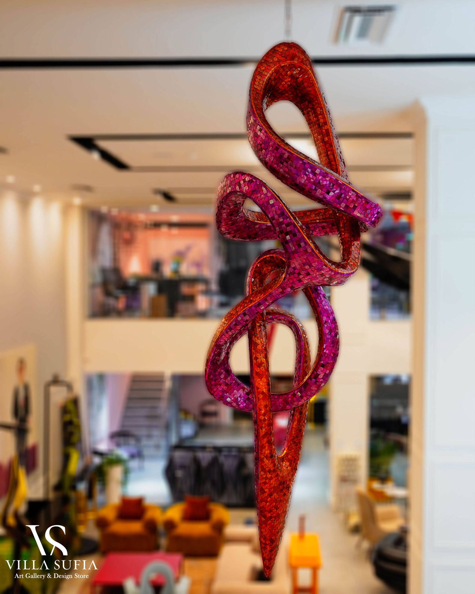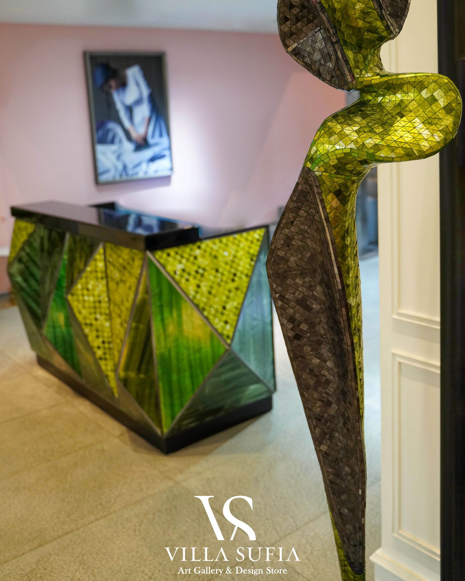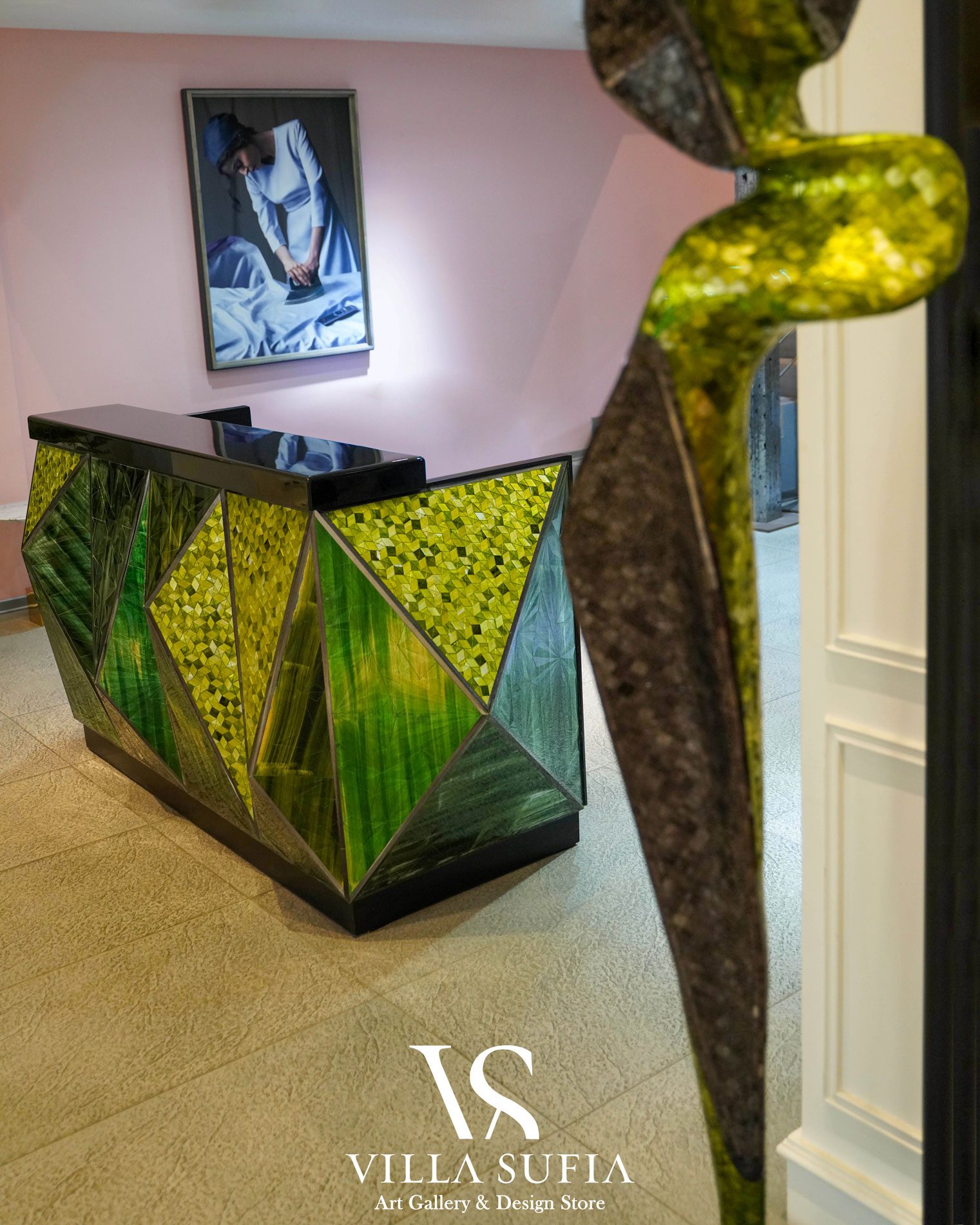 Villasufia is a design store and art gallery in Shemiran, Tehran. It has a design studio which provides design services to designers and builders. This studio includes various sections such as interior design, furniture design, building design, object design, industrial design, and carpet design. They have a professional engineering team to prepare technical drawings of objects, and in the production department, they also have various workshops such as wood, metal, glass, and fiber.