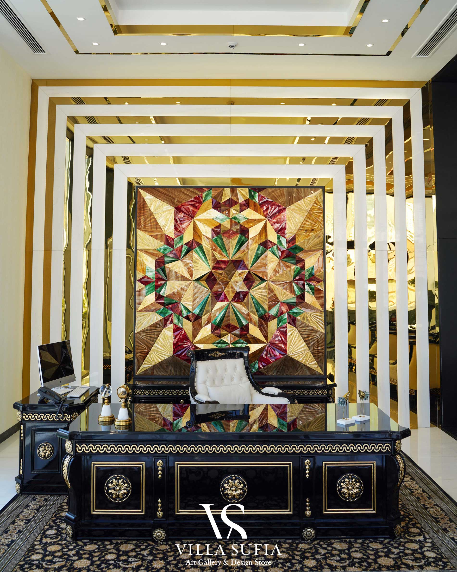 Villasufia can produce any design that has been asked, and due to the reasonable cost of production in Iran, this capability has become more and more justifiable. Being able to create with a variety of materials such as fiber, wood, metal in line with modern technology like 3D printing, Villasufia can design and produce all interior objects including furniture, chandeliers, carpets, wallpaper, pianos, billiard tables, etc., not needing ready-made ones, which allow Villasufia to have no design restrictions.